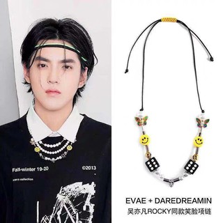Kris Wu Smile Necklace Background JPG. Hip hop rap necklace rap star singer kris wu asap rocky same dice skull pearl chain ceramic smile face evae necklace note: Here are some promo pics of him wearing his jewelry: